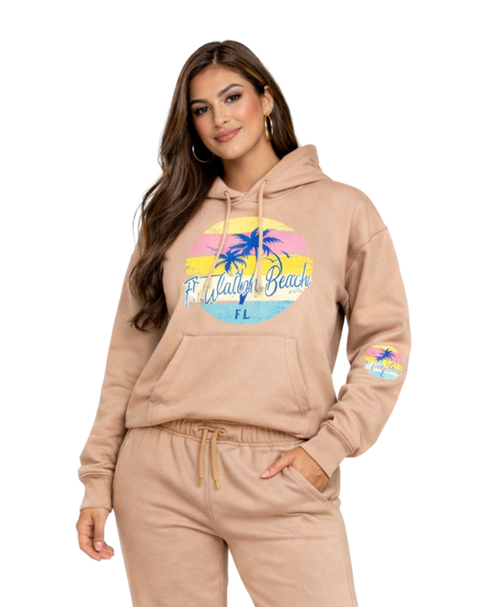Ft. Walton Beach Palm Tree/ Stripes (Hoodie& Pants) Set (Two Piece)